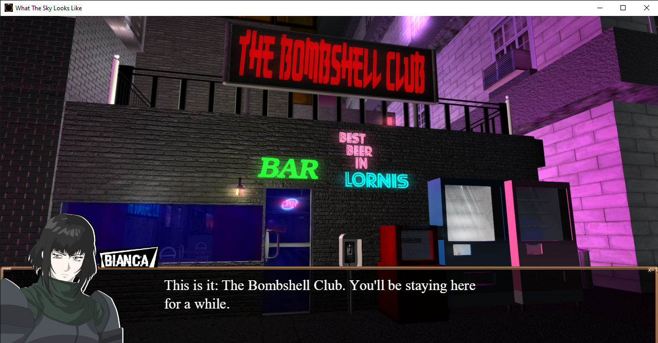 "What The Sky Looks Like", vol01 of the [deep.sleeper] saga within the Creator series is an Adventure RPG with visual novel elements and gameplay reminiscent of the PS2 gaming era & graphics that are reflective of that time period. The game follows the story of Sonder Moor, a young man who has to leave his home due to unforeseen circumstances that are revealed throughout the game to live in an underground city called Lornis.